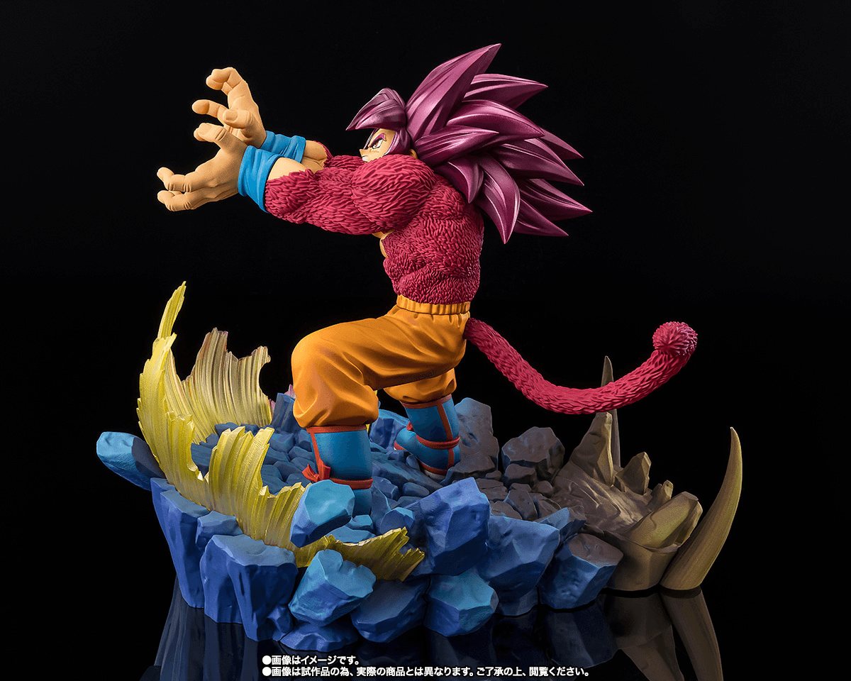 This figure recreates the scene from the climax where Goku fires a Kamehameha toward "Giant Gohma" with overwhelming sculpting and coloring. Goku's hair uses pearl coloring. By applying perspective to the base, even the spikes visible in the depths of the battlefield are expressed. Furthermore, the area around Goku is colored to image the reflection of the Kamehameha, reproducing even the differences in color tone.